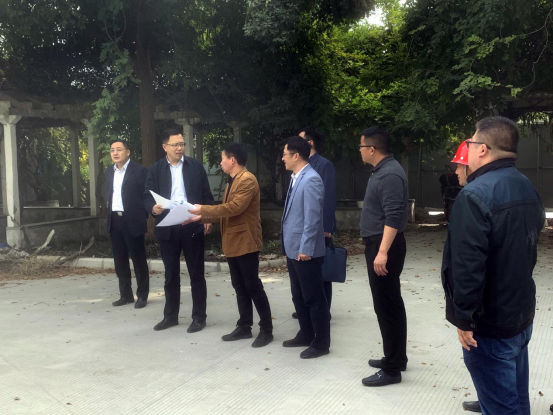2019年10月28日,海陵区委书记陈翔一行到二中工程现场视察项目进度,海驰建设董事长周维民、总经理杨净陪同视察。
